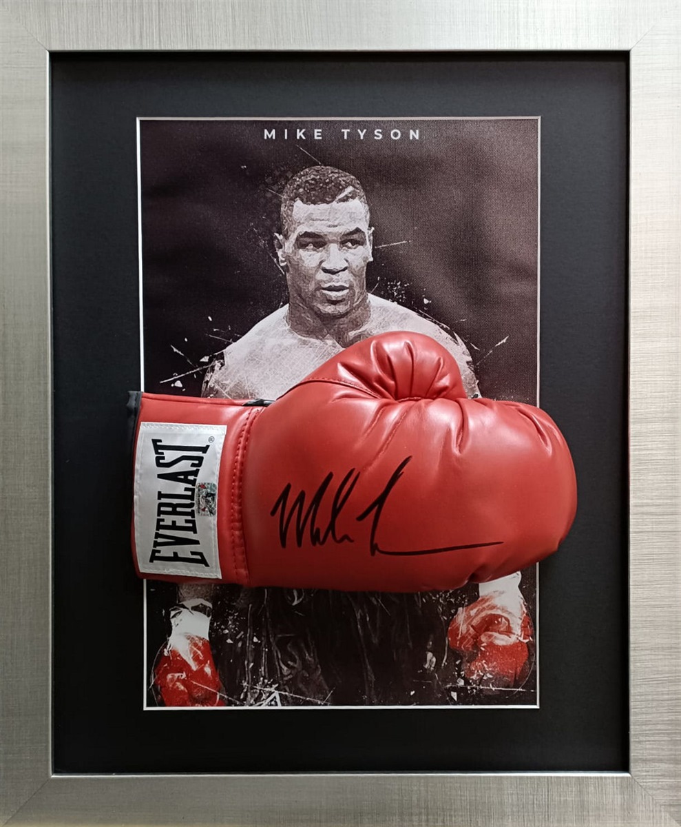 Framed Mike Tyson signed boxing glove. Comes with a certificate of authenticity.
